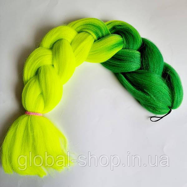 Канекалон коса омбре двоколірний зелено-лимонний довгий,60 смВ наявності